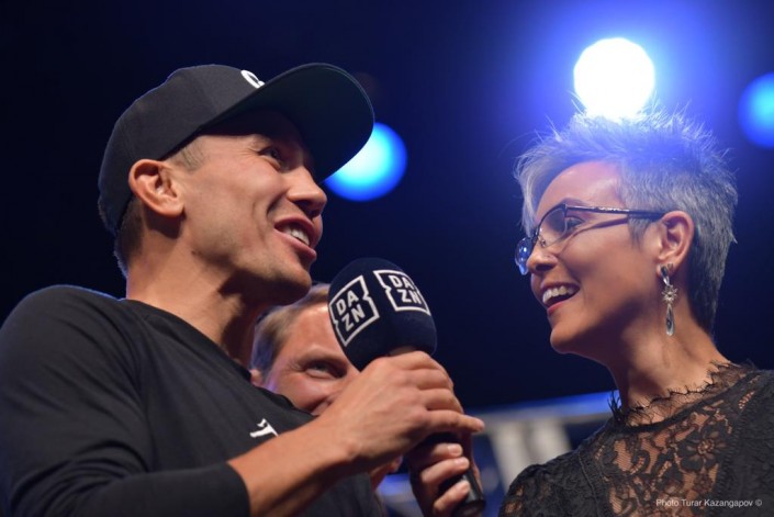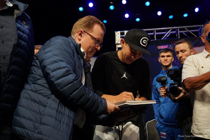 В ходе взвешивания Головкин пообщался с казахстанскими болельщиками и раздал автографы. А также попросил фанатов бокса поддержать Деревянченко.