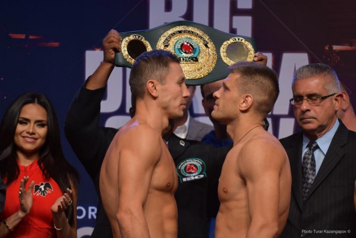 GGG - Деревянченко: Дуэль взглядов, слова перед боем и суммы гонораров Фото: Турар Казангапов