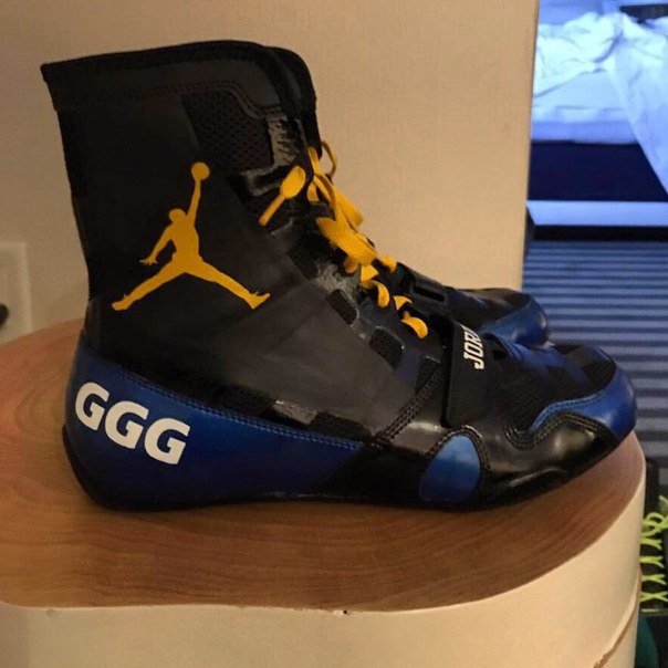 Как сообщалось, Головкин проведет поединок против американца в эксклюзивной обуви от бренда Майкла Джордана. Боксерки выполнены в черно-синем цвете и имеют логотип GGG. Ранее казахстанский боксер объявил о сотрудничестве с производителем спортивной атрибутики Jordan Brand, совместной торговой маркой компании Nike и легендарного баскетболиста Майкла Джордана.