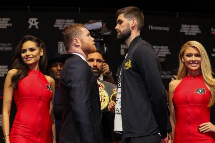 В США состоялись взвешивание и дуэль взглядов чемпиона мира в среднем весе по версиям WBC и WBA мексиканца Сауля "Канело" Альвареса и чемпиона WBA британца Рокки Филдинга, сообщает спортивный портал Vesti.kz.