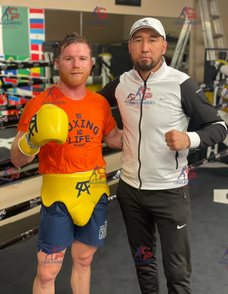 Боксеры проводят занятия в одном тренировочном зале. Отмечается, что Ербосынулы готовится к бою с кубинцем Давидом Морреллом, владеющим чемпионским поясом WBA, а Канело ведет подготовку к поединку с российским боксером Дмитрием Биволом.