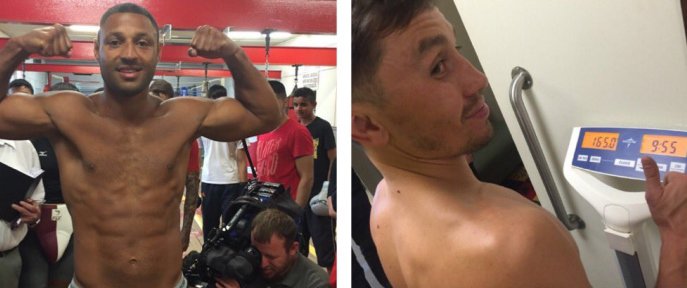 Как отмечает boxingscene.com, эта процедура была проведена согласно правилам WBC, чемпионским поясом которого владеет Головкин. В результате Брук оказался тяжелее Головкина. Британец весит 176 фунтов (79,8 килограмма), а Головкин всего 165 фунтов (74,8 килограмма).