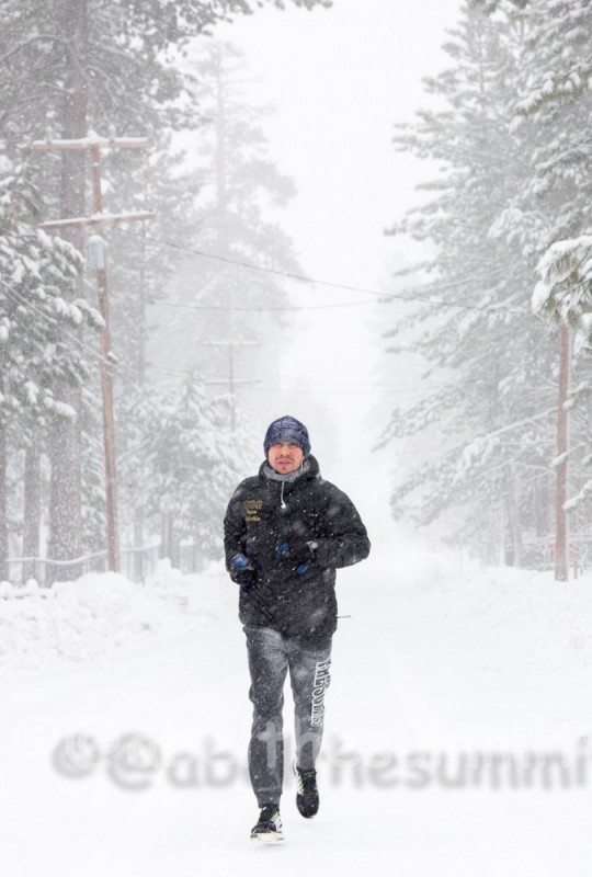 Обильный снегопад прошел на территории лагеря Абеля Санчеса Big Bear в Калифорнии, однако из-за этого GGG не стал отказываться от запланированной пробежки.