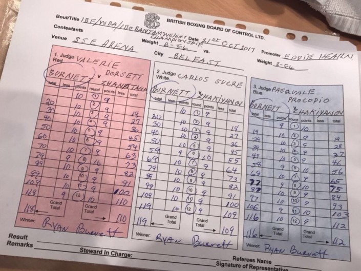 Опубликованы судейские карточки боя между казахстанцем Жанатом Жакияновым и британцем Райаном Барнеттом в объединительном бою за титулы чемпиона мира по версиям WBA (Super) и IBF в легчайшем весе, передают Vesti.kz.