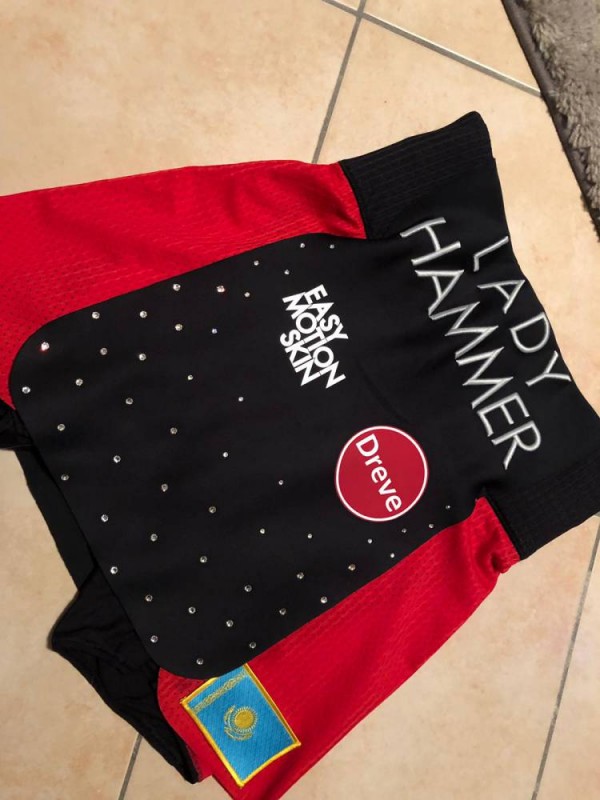 На шортах спортсменки в этом поединке был изображен флаг Казахстана.