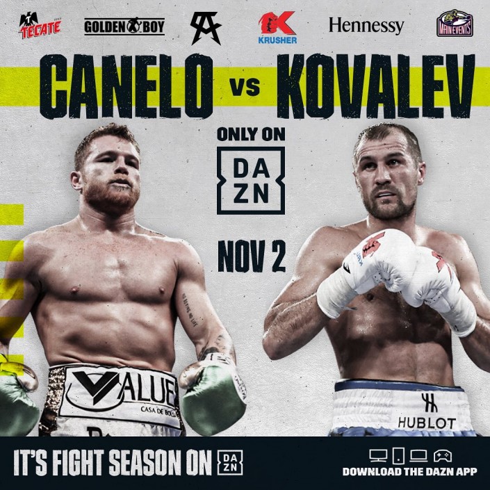 Бой состоится 2 ноября на MGM Grand Arena в Лас-Вегасе. На его кону будет стоять титул WBO, которым владеет 36-летний Ковалев. В случае победы 29-летний Альварес покорит четвертую категорию в карьере.