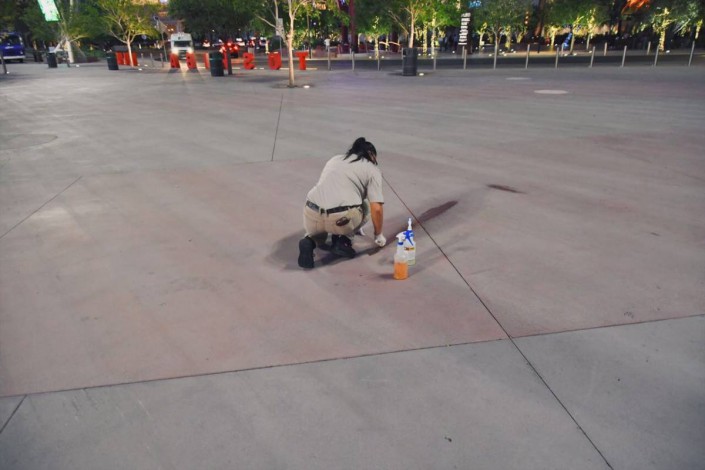 На арене T-Mobile тем временем идут последние приготовления перед боем. Так, площадь перед спортивным комплексом отмывают маленькими щетками с применением чистящих средств.