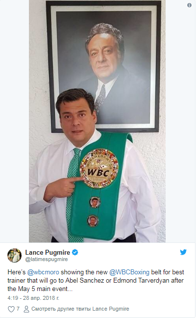 Соответственно, пояс получит либо Абель Санчес - наставник чемпиона мира по версиям WBA (Super), IBO, WBC и IBF в среднем весе казахстанца Геннадия Головкина (37-0-1, 33 КО), либо Эдмонд Тарвердян, тренирующий американца армянского происхождения Ванеса Мартиросяна (36-3-1, 21 КО).