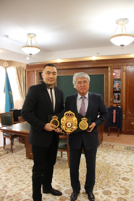 Министр культуры и спорта РК Арыстанбек Мухамедиулы встретился с боксером-профессионалом, чемпионом мира в двух весовых категориях - полутяжелой (WBA super) и первой тяжелой (WBA), Бейбутом Шуменовым, передает Tengrinews.kz.