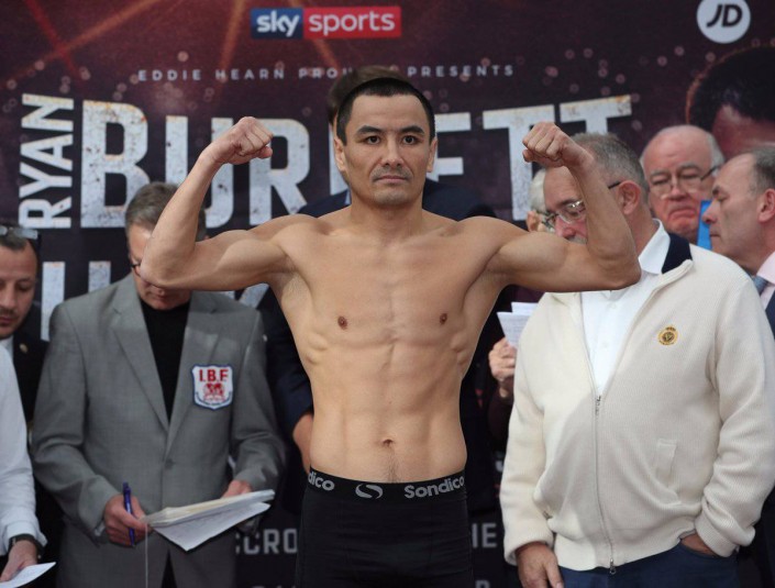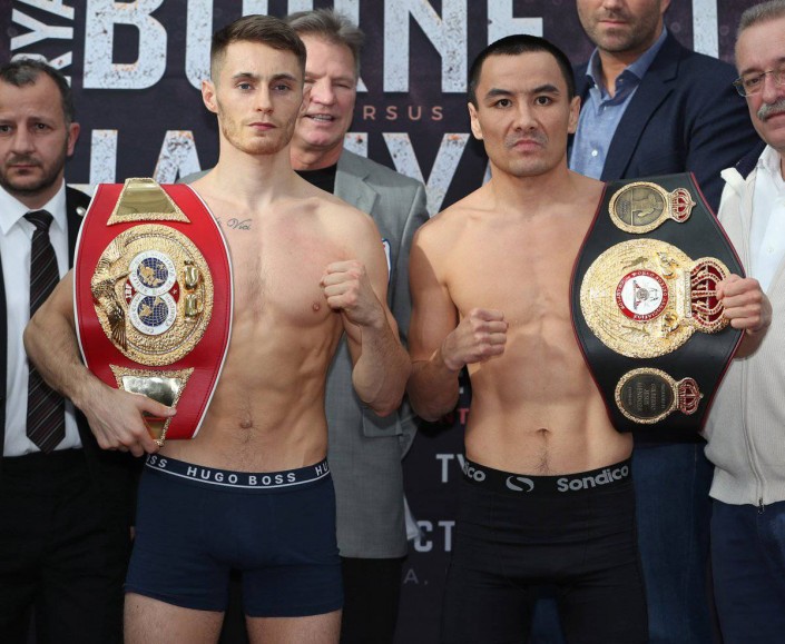 Казахстанский боксер Жанат Жакиянов, владеющий титулом чемпиона мира по версии WBA в легчайшем весе, и чемпион IBF ирландец Райан Барнетт провели официальное взвешивание и последнюю дуэль взглядов перед объединительным боем.