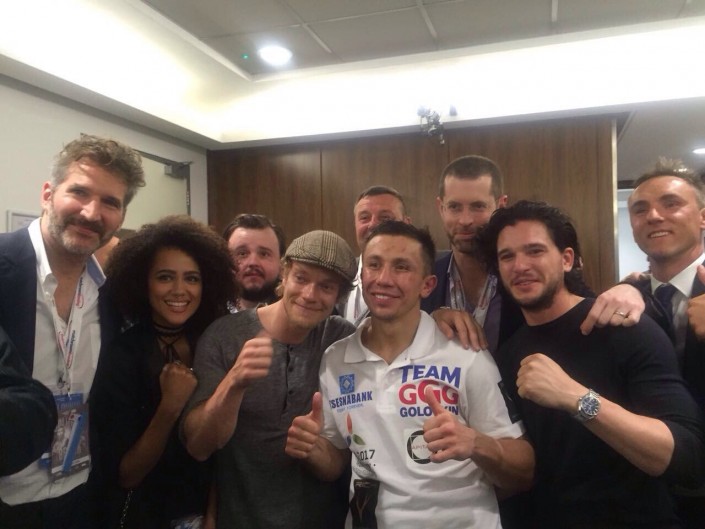 На вечер бокса на лондонской арене O2, главным событием которого стал бой между казахстанцем Геннадием Головкиным и британцем Келлом Бруком, пришло немало мировых знаменитостей. Среди них были замечены форвард "Манчестер Юнайтед" Златан Ибрагимович, актеры сериала "Игра престолов", известные боксеры Бернард Хопкинс, Дэвид Хэй, Насим Хамед, Джеймс Дигейл и другие.