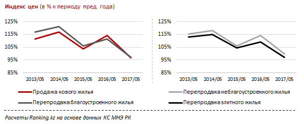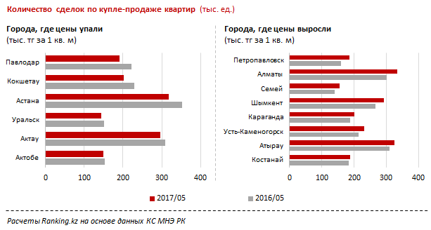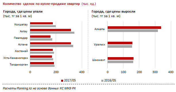По информации аналитиков, цены на жилье за январь-май 2017 года в среднем упали на 2,3 процента, что простимулировало покупателей, так как количество сделок выросло на 30 процентов.
