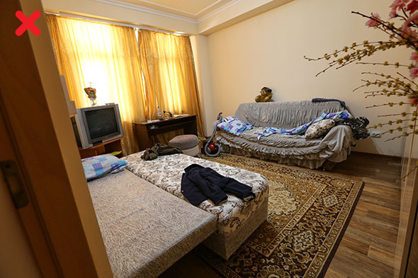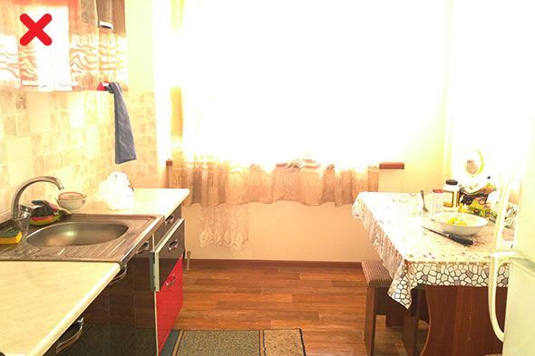 Если дома есть потрепанные ковры, но при этом хорошее напольное покрытие, ковры лучше на время убрать. То же касается других предметов интерьера неприглядного вида. В пользу вашей квартиры также не сыграют выцветшие шторы, покосившийся стол или истерзанный кошкой любимый диван. Да, это вещи, которые к продаже квартиры отношения не имеют, однако могут создать негативное впечатление при просмотре объявления.