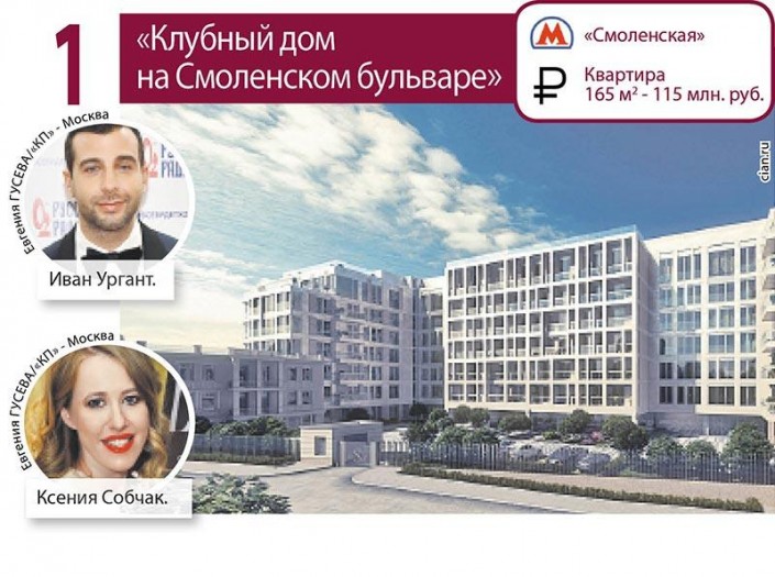 Ивана Урганта, Ксению Собчак и Никиту Михалкова можно встретить в "Клубном доме на Смоленском бульваре". В доме 28 квартир, он расположен на второй линии Садового кольца. "У Собчак одна лишь гардеробная занимает около 50 квадратных метров, также есть огромная библиотека, а в ванной комнате имеется специальный холодильник для крема", - пишет издание.