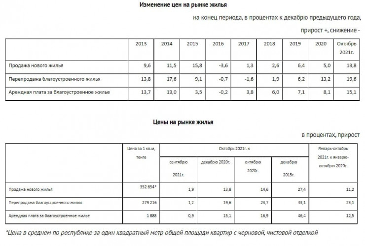 В Бюро национальной статистики подсчитали, как изменились цены на рынке жилья в октябре 2021 года, передает Tengrinews.kz.