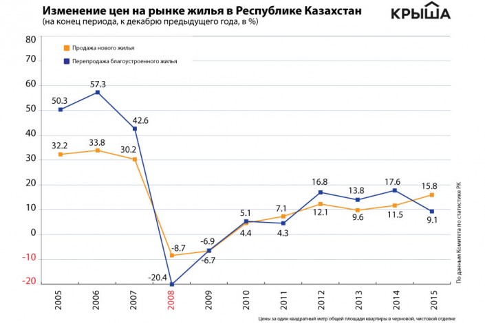"В целом за десять лет, с 2005 по 2015 год, максимальный рост цен как на первичном (+69,9 процента), вторичном рынке (+78 процентов), так и в сегменте аренды наблюдался в 2005-2007 годах. По информации Комитета по статистике, в течение указанных трех лет годовой прирост цен на новое жилье достигал более 30 процентов, на вторичное - более 50 процентов, - рассказали специалиста сайта. - Во время кризиса 2008–2009 годов, а также после него прироста цен не наблюдалось вообще. Тогда рынок новостроек находился в стагнации, а собственники вторичного жилья вынуждены были уступать. С 2010 года рынок недвижимости вновь стал укрепляться, что привело к плавному росту цен".