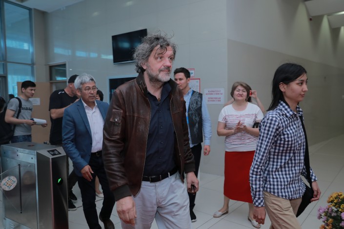 В рамках проведения XIV МКФ "Евразия" прошли интересные встречи. В 12.00 культовый режиссер, актер и музыкант Эмир Кустурица встретился со студентами КазНУИ. Режиссер рассказал о некоторых секретах создания своих картин, съемочном процессе, первых и традиционных моментах в ремесле кинематографиста. Эмир заметил, что сегодня тем для сценария фильма кажется много, но в XXI веке они стали другими. Появились новые вызовы, другие интересы, а зритель стал более требователен. И в то же время с новыми технологиями для создания хорошего фильма необходимы хороший вкус, дерзость и камера мобильного телефона.