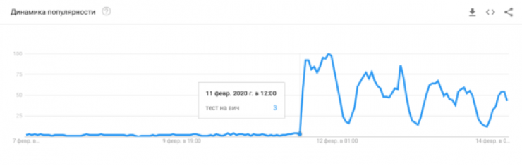 Динамика популярности запроса "тест на ВИЧ" по всему миру за семь дней