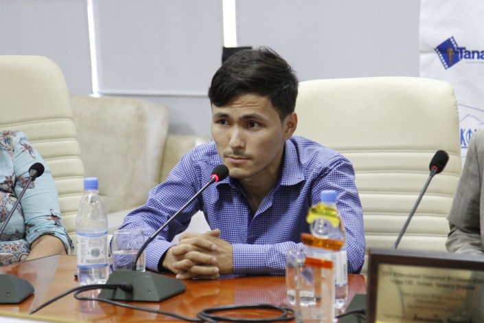 Серик Абишев вручает награду юному актеру. Фото Tengrinews.kz