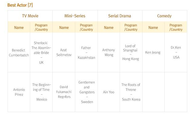 Решением жюри конкурса он обогнал в данной категории Дэвида Фукамачи из Швеции. Отметим, что в номинации в разных категориях боролись Бенедикт Камбербэтч, американец Кен Джонг и месиканец Антонио Перес, а также Энтони Уонг из Гонконга и Ю Аин из Южной Кореи.