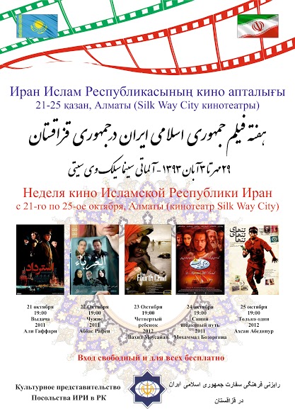 Алматинским зрителям во время недели иранского кино будут показаны пять отобранных кинолент: "Выдача", "Чужие", "Четвертый ребенок", "Синий шелковый путь" и "Только один". Во время показов будут присутствовать кинопродюсеры из Ирана, в том числе директор международного кинофестиваля “Фаджр” Мохаммад Хазайи, Пежман Лашгарипур и руководитель международного кинофестиваля Реза Хазали. Они планируют провести переговоры с казахстанской стороной о создании совместной работы.