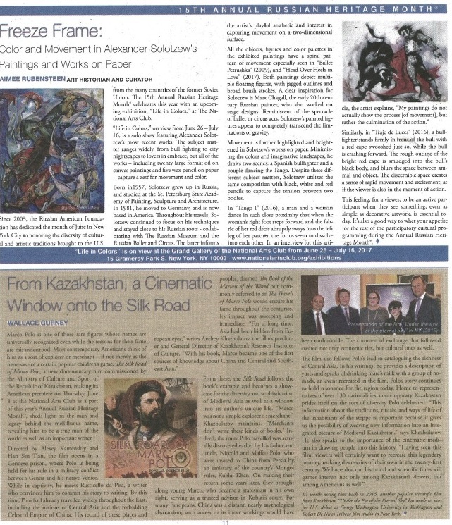 "Для нас большая честь представлять казахстанский фильм в Нью-Йорке. Безусловно, фильм вызовет огромный интерес у американских зрителей. Ведь история легендарного Шелкового пути полна загадок и тайн. Здесь возникали и исчезали древние цивилизации, неизвестные мастера создавали бесценные памятники культуры, прославленные путешественники делали удивительные открытия", - поделилась президент Русско-американского фонда Марина Ковалева.
