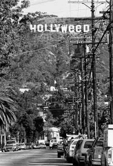 Мужчина в темной одежде, которого зафиксировали камеры наблюдения, подкорректировал надпись в Hollyweed, что можно перевести как "святая марихуана" (weed по-английски - трава в значении "марихуана"). Для замены букв на вывеске он использовал материал, похожий на брезент.