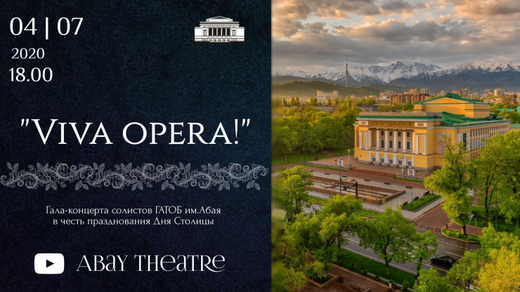В честь Дня столицы, города Нур-Султана, Казахский государственный академический театр оперы и балета имени Абая представит легендарную героико-эпическую оперу Еркегали Рахмадиева "Абылай Хан" на либретто Абиша Кекилбаева и праздничный концерт Viva Opera в рамках онлайн-проекта Gatob_Life.