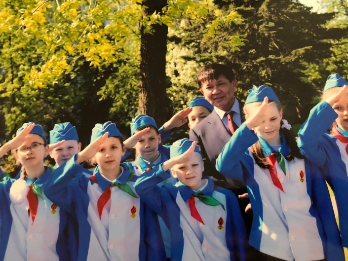 Ермухамет Ертысбаев с белорусскими пионерами. Фото из личного архиваБеседовала Ботагоз Айтжанова