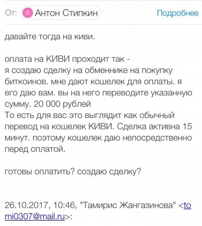 По ее словам, после взлома страницы на электронную почту ей пришло письмо о том, что, если они хотят вернуть свой аккаунт, необходимо перечислить 20 тысяч рублей на Kiwi-кошелек.