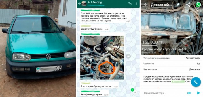 На следующий день пострадавшие разместили объявление о пропаже в различных соцсетях и сообществах, чтобы им хоть как-то помогли с поиском угнанного Volkswagen. Через некоторое время один из их знакомых обнаружил объявление о продаже запчастей на аналогичную машину на одном из онлайн-сервисов. Двигатель и КПП в объявлении были идентичны тем, что были установлены на пропавшем автомобиле.