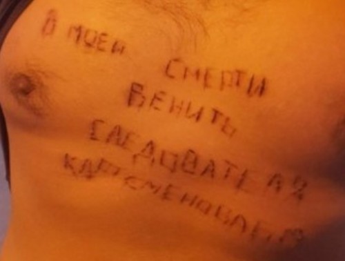 В следственном изоляторе Актобе доведенный до отчаяния подозреваемый вырезал на груди имя следователя в знак своей невиновности. Об этом сообщает Times kz.