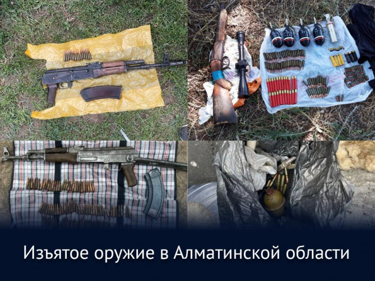 Задержаны жители Талгарского района, причастные к незаконному хранению двух автоматов Калашникова, гладкоствольного ружья, гранаты Ф-1 и 180 боеприпасов", - говорится в сообщении.