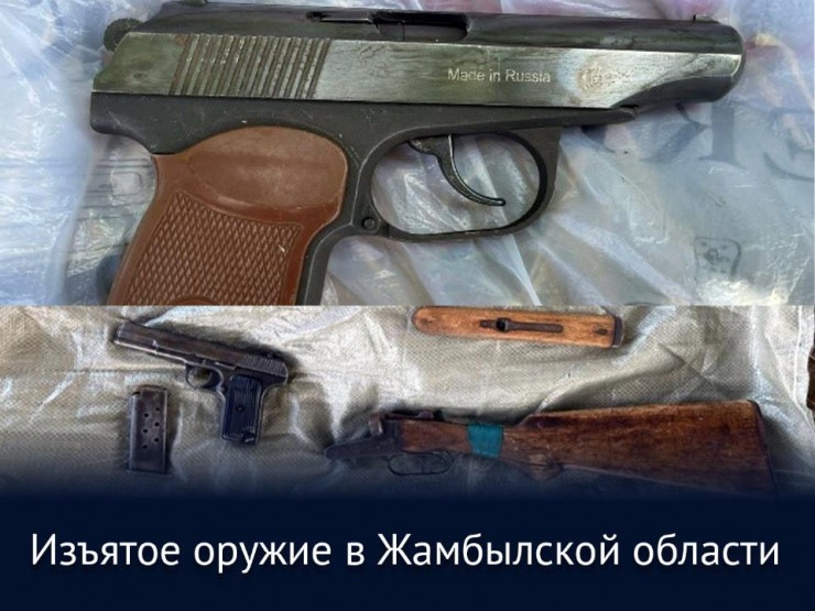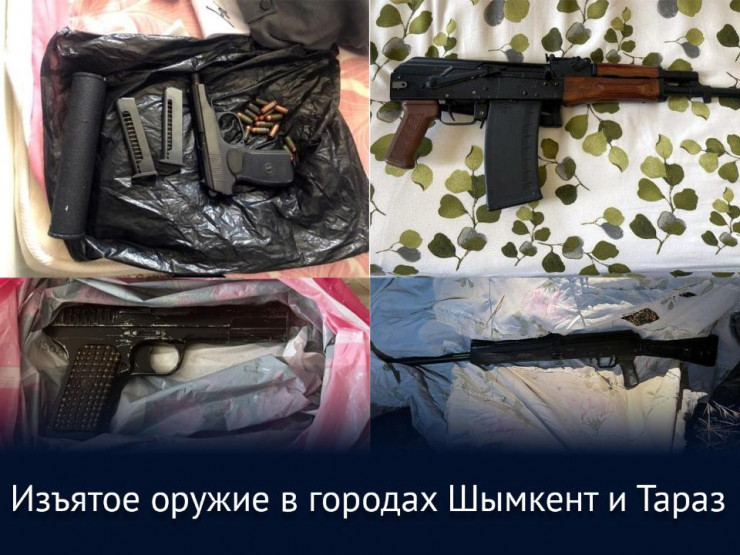 В Шымкенте и Таразе была обезврежена преступная группа, у которых изъяты три пистолета, две единицы нарезного карабина "Сайга", два ружья, пневматический пистолет, винтовка, а также 64 боеприпаса.