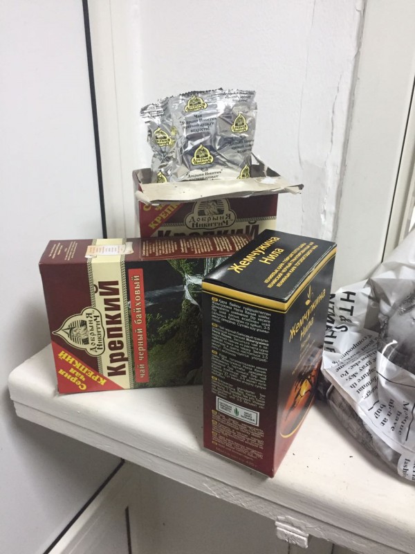 Вещество растительного происхождения со специфическим запахом, темно-зеленого цвета было обнаружено при досмотре ручной клади в трех пачках из-под чая "Жемчужина Нила" и "Крепкий Чай". Находка была завернута в прозрачные полиэтиленовые пакеты и обмотана скотчем.