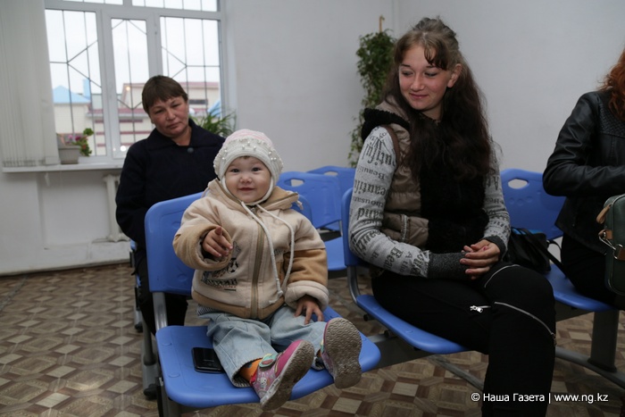 Потерпевшая Любовь Дорошенко с полуторагодовалой дочерью Кариной в здании суда. © ng.kz