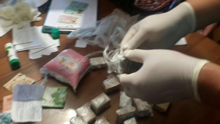В нем был выявлен пакет с гашишем весом около 650 граммов. В пакете, который был обмотан белым материалом, гашиш был расфасован в спичечные коробки в количестве 19 штук.