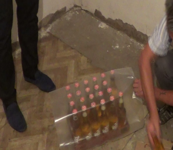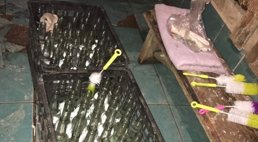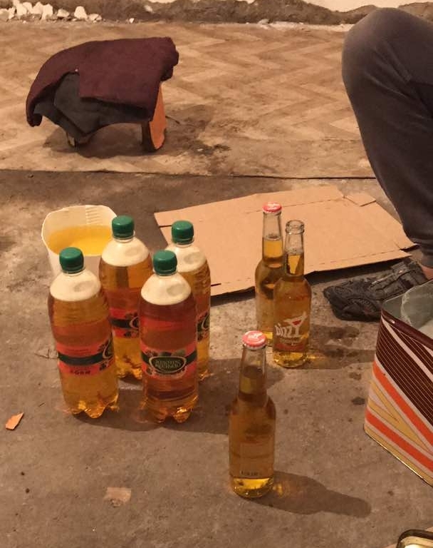 По результатам оперативно-следственных мероприятий обнаружено и изъято 6 упаковок энергетического напитка, пищевой краситель, лимонная кислота, шприц, щетки для чистки бутылок, газовая горелка, пустые бутылки из-под напитков "Dizzy", "Золотое Кольцо" и полиэтиленовый рулон для упаковки коробок.