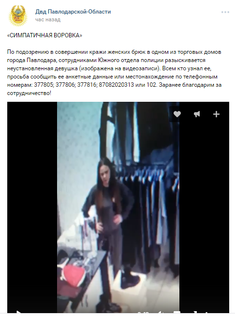 По подозрению в краже брюк в одном из торговых домов Павлодара объявлена в розыск девушка, чьи действия попали на камеру видеонаблюдения, передает корреспондент Tengrinews.kz со ссылкой на ДВД Павлодарской области.