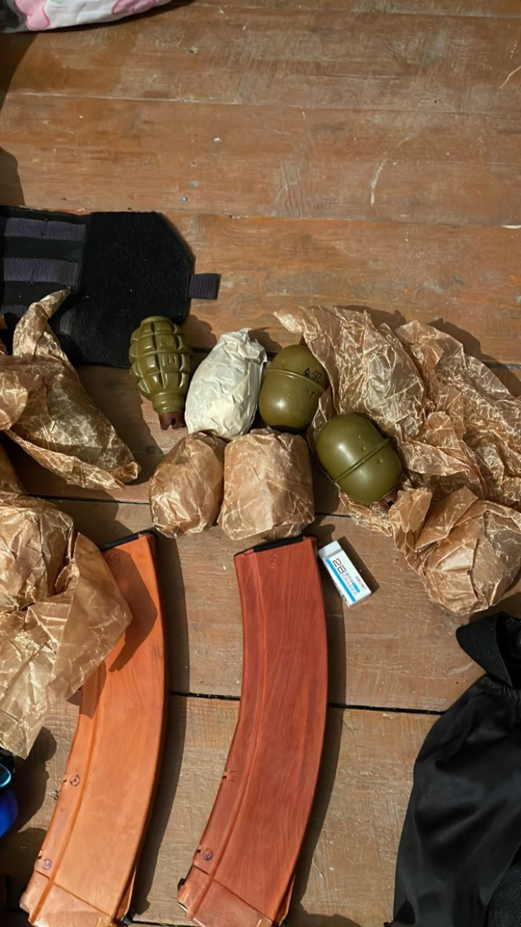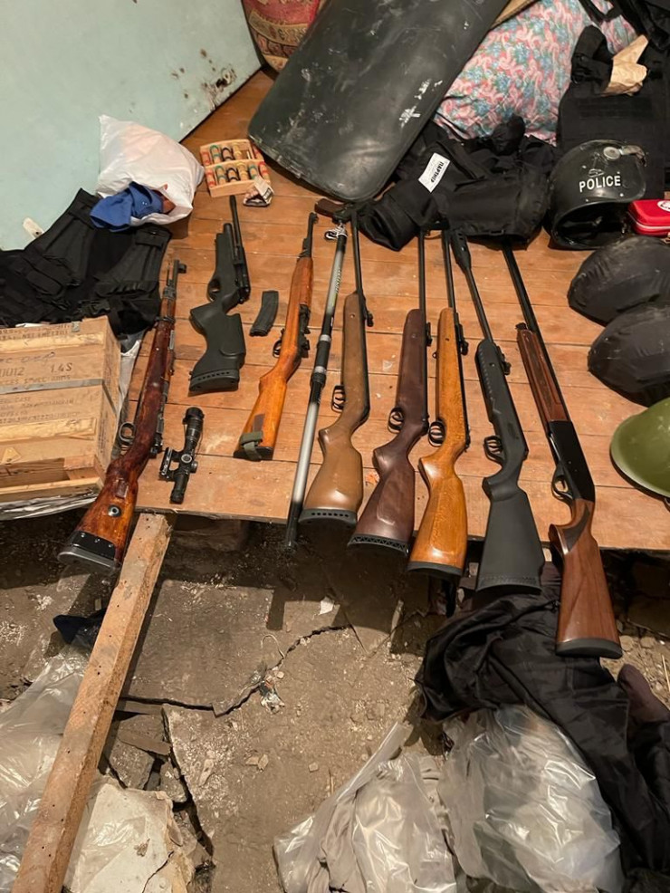 В частности, как отмечается, в ходе обыска обнаружено два цинка с боевыми патронами, 12 гранат, два магазина от АК-47 с патронами, бронежилеты, щиты, каски, снаряд от РПГ, гладкоствольные ружья, девять винтовок и другое.