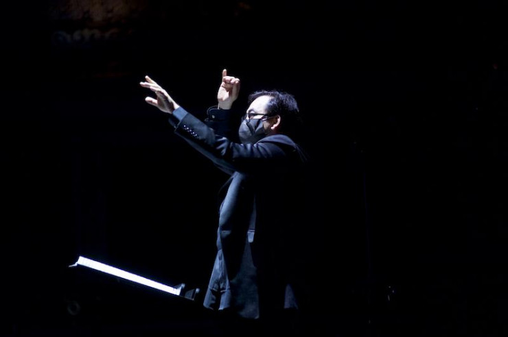 Изменения коснулись и рассадки музыкантов оркестра: согласно санитарным нормам инструменталисты находятся в полутора метрах друг от друга. На таком расстоянии сложно создать безупречный ансамбль музыкантов, но артисты оркестра блестяще с этим справились.