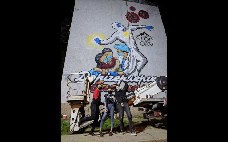 Врачам - борцам с COVID-19 посвятили мурал в Алматы