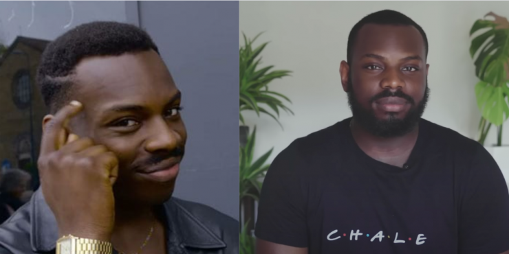 Мем взят из мини-документального сериала BBC Three 2016 года Hood Documentary, в котором персонаж, которого играет актер Кайоде Эвуми, показывает пальцем на свою голову и улыбается, сказав, что находит женщину красивой, потому что "у нее хорошие мозги". Сейчас ему 27 лет.