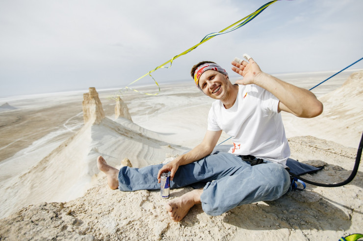 Сильнейший ветер, 50-градусная жара и маленькая фигурка человека на высоте 200 метров между клыков урочища Бозжыра – так началось приключение ивестного эстонского слэклайнера в Казахстане.