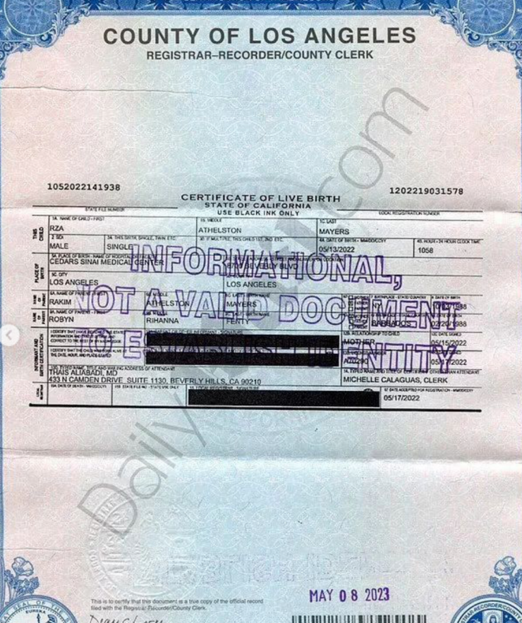 Благодаря документу стало известно и место, где Рианна родила сына. Так, певица доверилась самому популярному медицинскому центру Cedars-Sinai в Лос-Анджелесе.