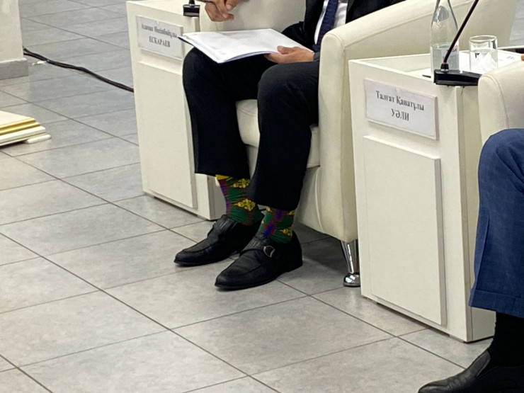 5 мая в Алматы состоялась встреча министра юстиции Азамата Ескараева с населением и общественностью города, которая была посвящена вопросам в сфере юстиции. Участники мероприятия обратили внимание на необычные носки спикера, передает корреспондент Tengri Life.