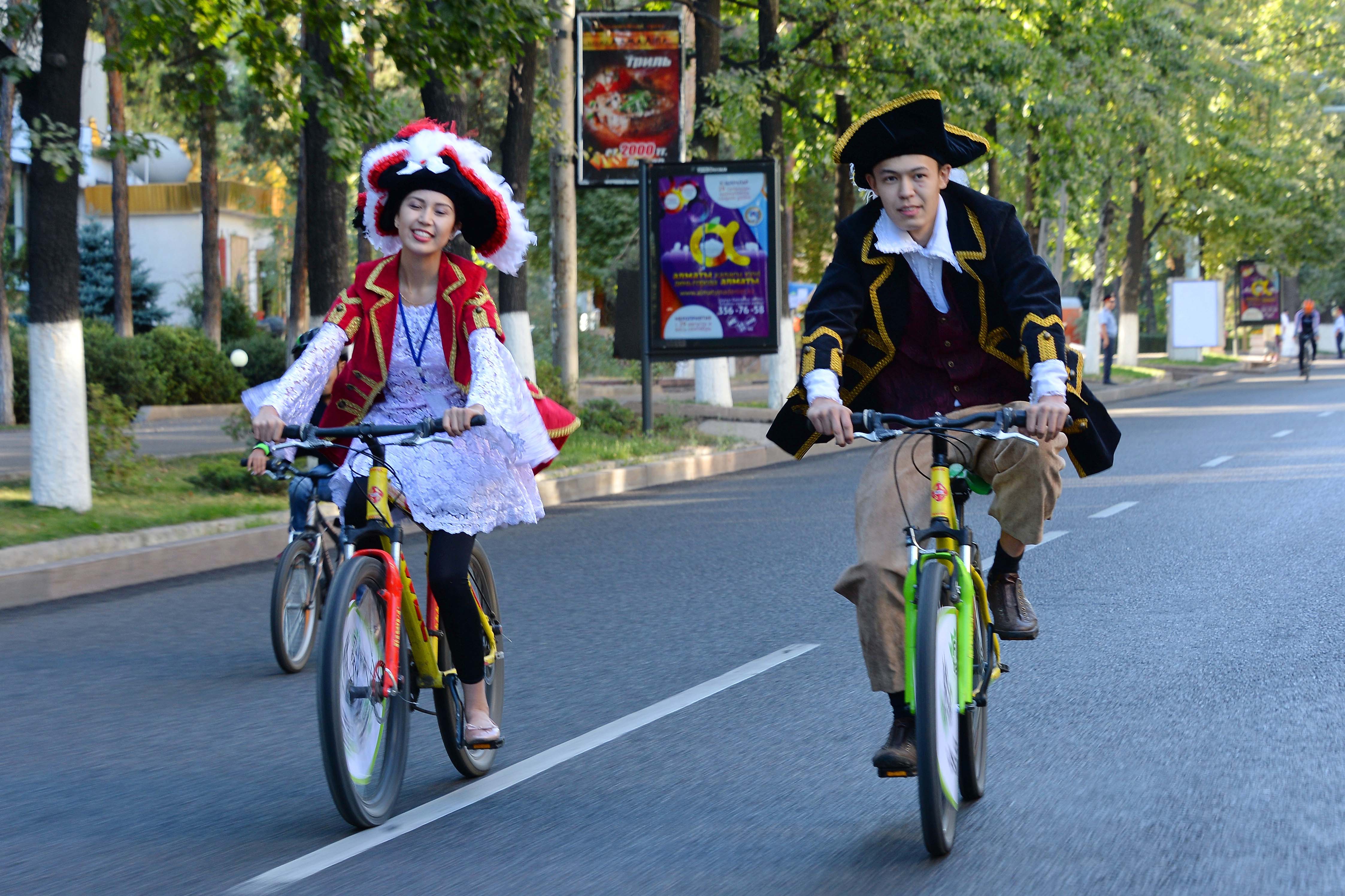 Более тысячи алматинцев и гостей города приняли участие в костюмированном велопараде, продемонстрировав свою оригинальность в создании нарядов. На улицах южной столицы можно было увидеть персонажей из фильмов "Пираты Карибского моря", "Чужой", клоунов, хакеров, ведьм и многих других.