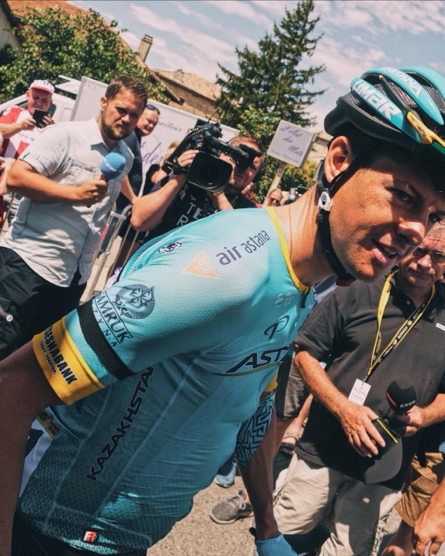 Велогонщики команды "Астана" вышли на старт очередного этапа Тур де Франс с траурными лентами, передает корреспондент Тengrinews.kz.
