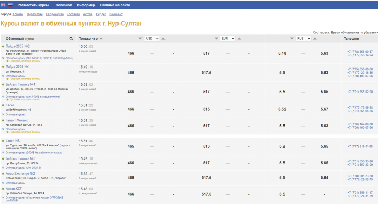 Обменные пункты Нур-Султана, судя по данным на сайте kurs.kz, приостановили продажу долларов и евро. Доллар в обменниках столицы скупают по 466 тенге, а евро - по 517 тенге.