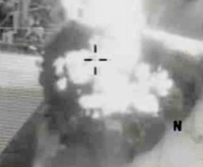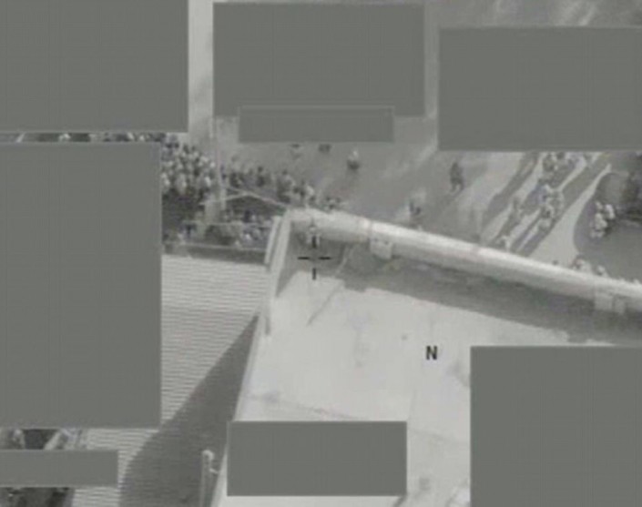 На видео запечатлен момент, когда британский дрон Reaper, управляемый с расстояния более трех километров, выпустил ракету Hellfire. В результате снаряд попал в крышу здания, убив находившегося на ней снайпера и сорвав публичную экзекуцию.